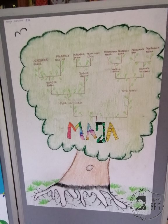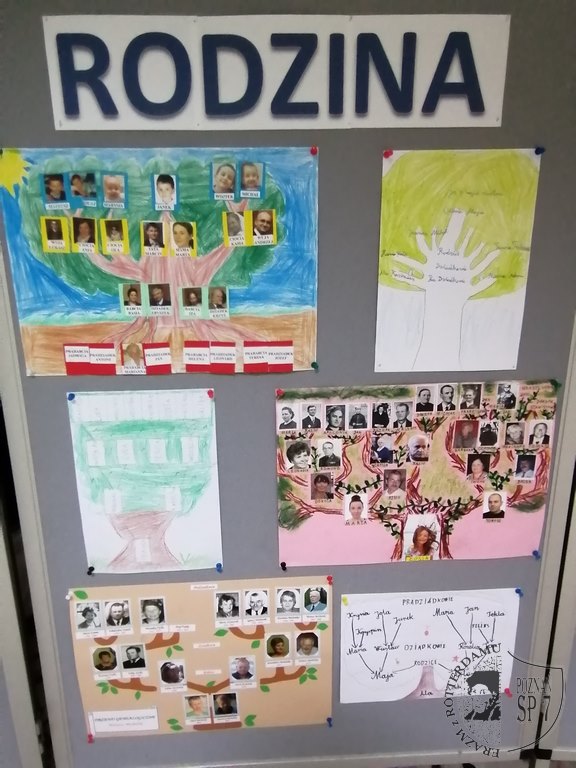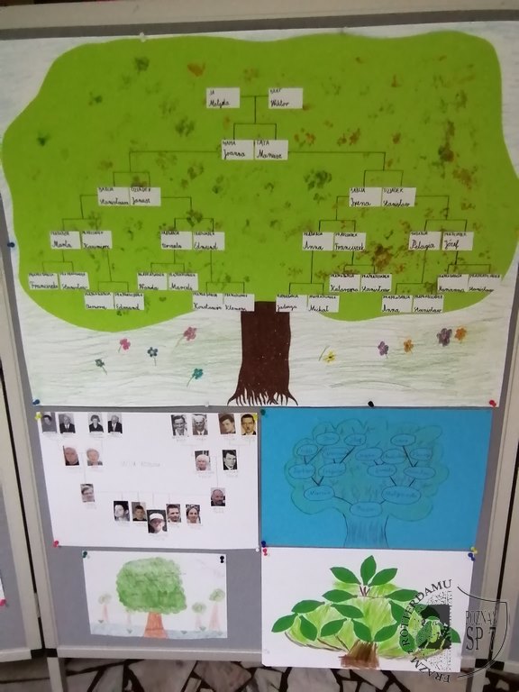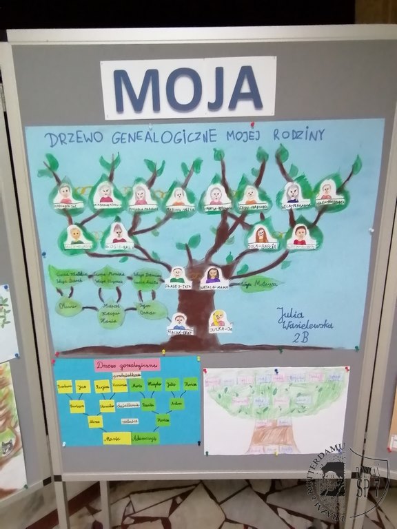 Okazało się, że w tej kwestii dziadkowie są prawdziwą kopalnią wiedzy. Swoją radą i pomocą służą nam na co dzień nasi kochani rodzice. To z ich pomocą wykonaliśmy piękne drzewa rodowe, które można zobaczyć w holu szkoły i na zdjęciach poniżej. Szukanie śladów dotyczących naszych rodzin to prawdziwa frajda. Zachęcamy wszystkich do takich poszukiwań. 🙂