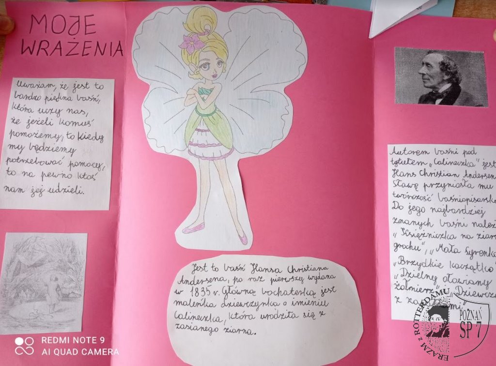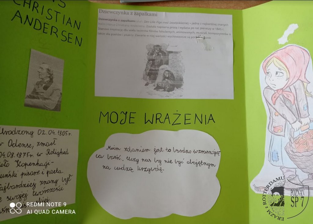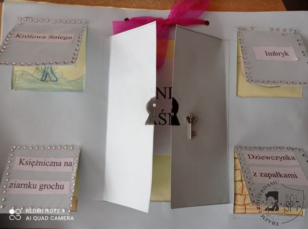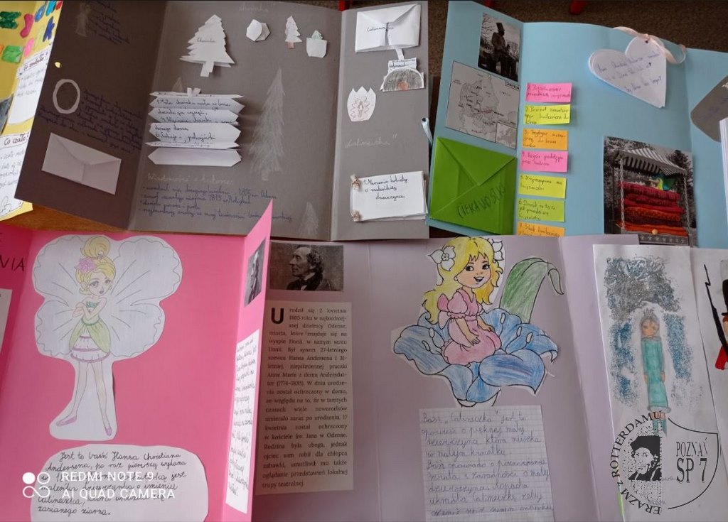 W zeszłym tygodniu klasa 3a poznawała twórczość H.Ch.Andersena. W związku z tym uczniowie wykonywali lapbooka, czyli teczkę z kieszonkami, karteczkami, rysunkami, słówkami, opisami i opowiadaniami dotyczącymi wybranych baśni.