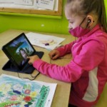 Wychowawcy naszej świetlicy pracują codziennie z dziećmi z klas I – III, które z różnych przyczyn muszą przychodzić do szkoły i na miejscu realizować program dydaktyczny. Otaczamy te dzieci opieką i zapewniamy im wszystko, co konieczne: organizujemy łączenia na szkolnych komputerach lub tabletach, pomagamy dzieciom w wykonywaniu zadań z kart pracy, zadań domowych, prac plastycznych proponowanych przez ich nauczycieli, razem ćwiczymy na zdalnych zajęciach z wychowania fizycznego. Staramy się też by znaleźć czas na odpoczynek i regenerację sił między łączeniami. Korzystamy ze sprzętu szkolnego, aby usprawnić i uatrakcyjnić zajęcia dzieci chętnie pracują i bawią się używając np. ekranu dotykowego.