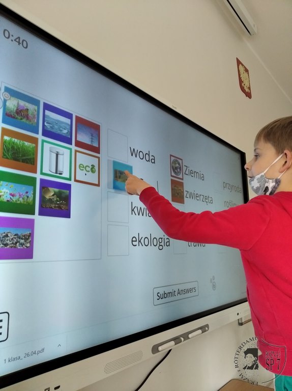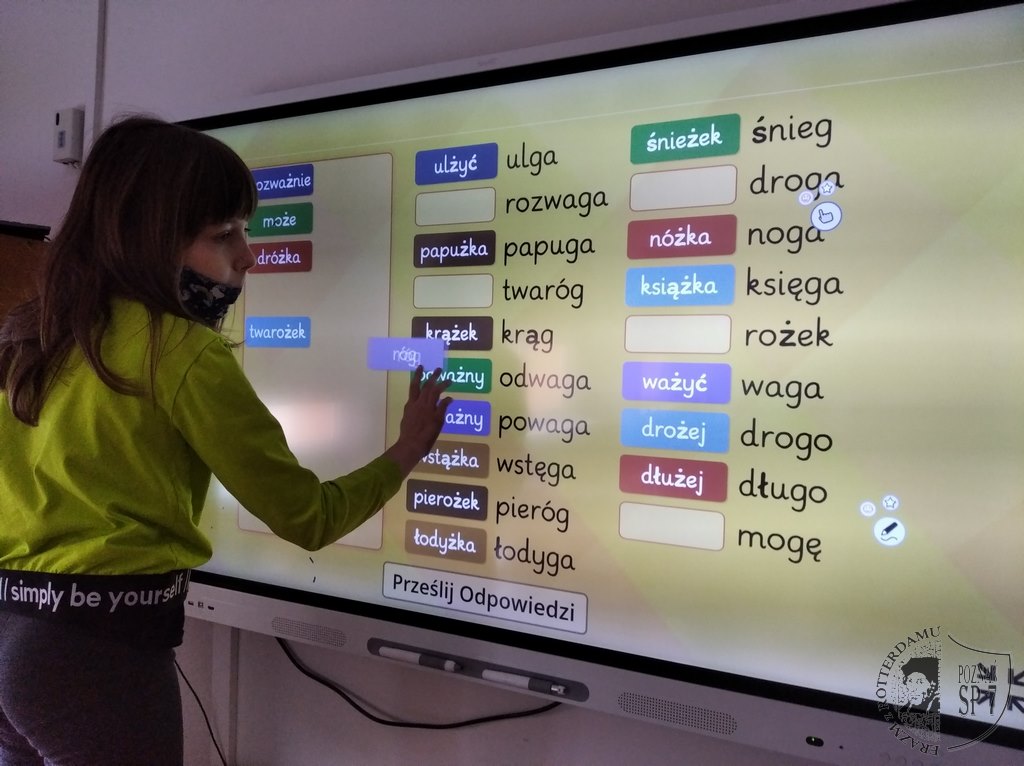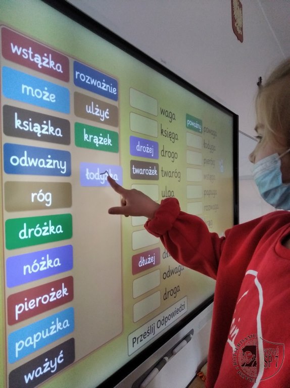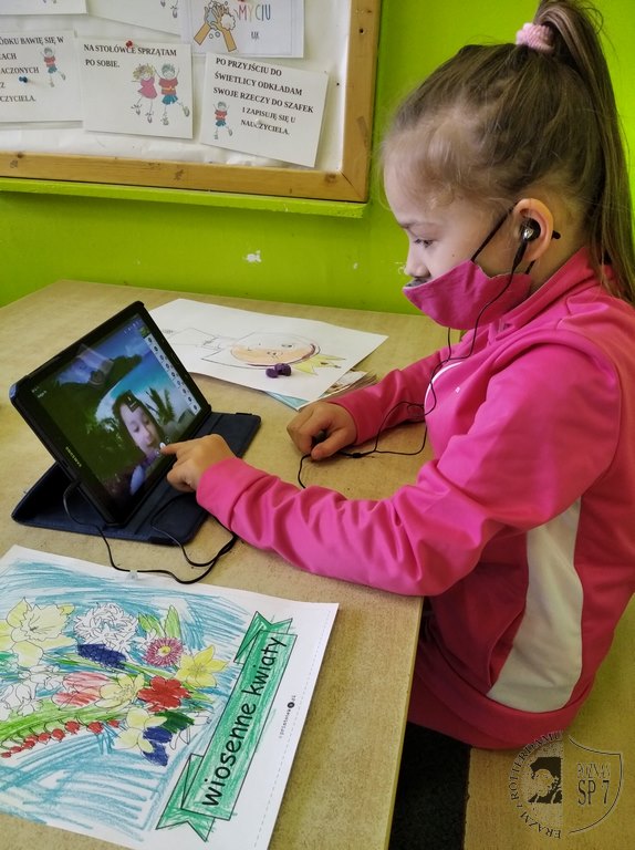 Wychowawcy naszej świetlicy pracują codziennie z dziećmi z klas I – III, które z różnych przyczyn muszą przychodzić do szkoły i na miejscu realizować program dydaktyczny. Otaczamy te dzieci opieką i zapewniamy im wszystko, co konieczne: organizujemy łączenia na szkolnych komputerach lub tabletach, pomagamy dzieciom w wykonywaniu zadań z kart pracy, zadań domowych, prac plastycznych proponowanych przez ich nauczycieli, razem ćwiczymy na zdalnych zajęciach z wychowania fizycznego. Staramy się też by znaleźć czas na odpoczynek i regenerację sił między łączeniami. Korzystamy ze sprzętu szkolnego, aby usprawnić i uatrakcyjnić zajęcia dzieci chętnie pracują i bawią się używając np. ekranu dotykowego.