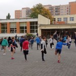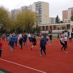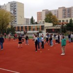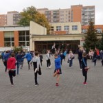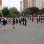 Po zebraniu się wszystkich uczniów i przedstawieniu programu zajęć, rozpoczął się uroczysty trening przy muzyce. Mimo jesiennej aury, na twarzach dzieci gościł uśmiech. Rozgrzewka była naprawdę ciekawa. Pojawiły się elementy tańca, fitnessu oraz stretchingu. Dzieci chętnie ćwiczyły i były gotowe do dalszych zmagań.