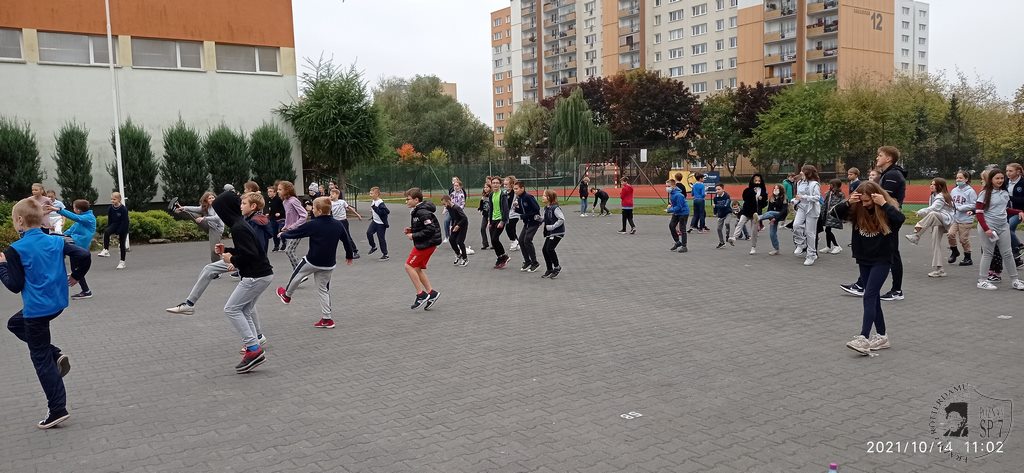 Kolejnym zadaniem, którego podjęli się Siódemkowicze był bieg dookoła szkoły. Uczniowie przebiegli dwa okrążenia. Wszyscy ukończyli dystans, a co najważniejsze wspierali się wzajemnie, aby nikt się nie poddał. Brawo! Udało się 🙂