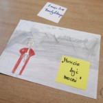 I jeszcze najmłodsi uczniowie wspominali najważniejsze wydarzenia z życia i pontyfikatu JP II, utrwalali jego wizerunek, rozmawiali o jego zainteresowaniach i słuchali ulubionych piosenek oraz wykonali prace plastyczne na temat: z czym kojarzy nam się Jan Paweł II