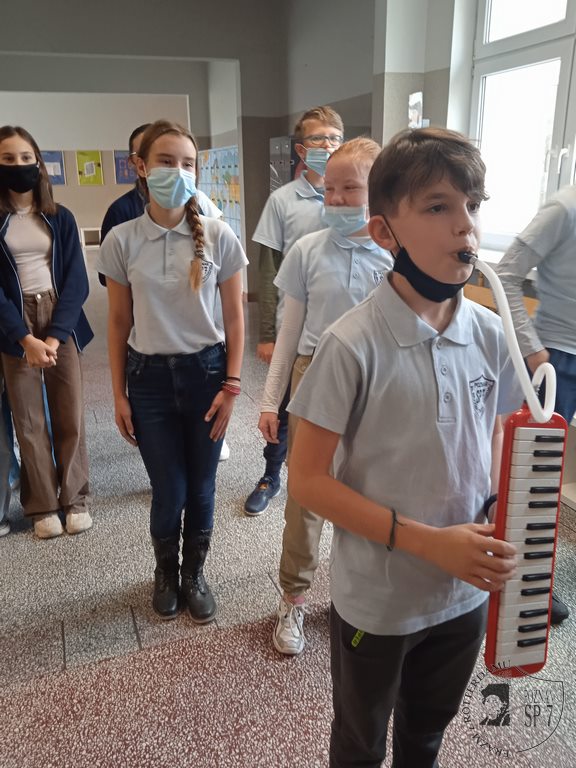 Najbardziej zaskoczyła nas klasa 7b i panujący nam przewodniczący szkoły Eryk, który przyniósł własny sprzęt grający i przygotował klasę do spontanicznego występu.