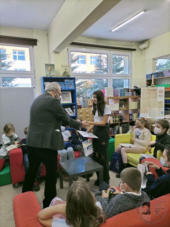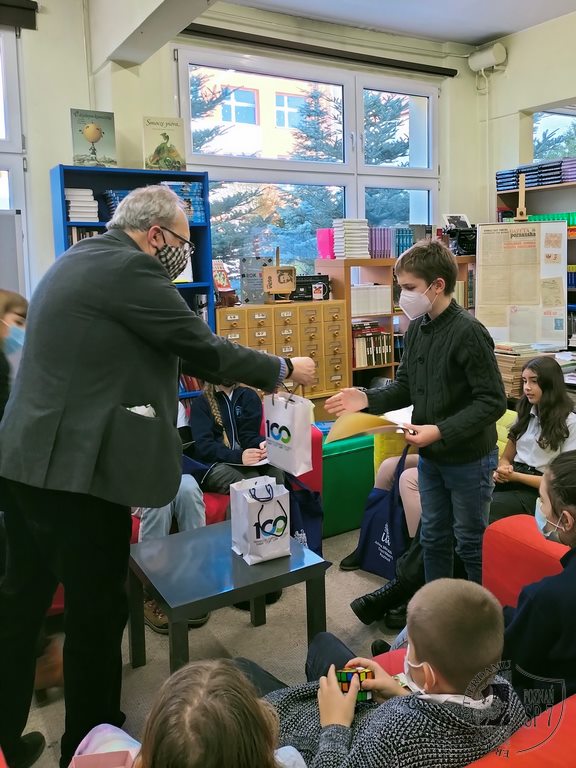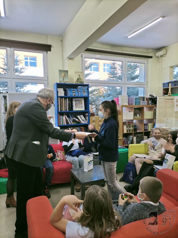 Profesor, ucharakteryzowany na Erazma, wręczył uczestnikom Konkursu nagrody. Były to między innymi bony podarunkowe do Empiku.