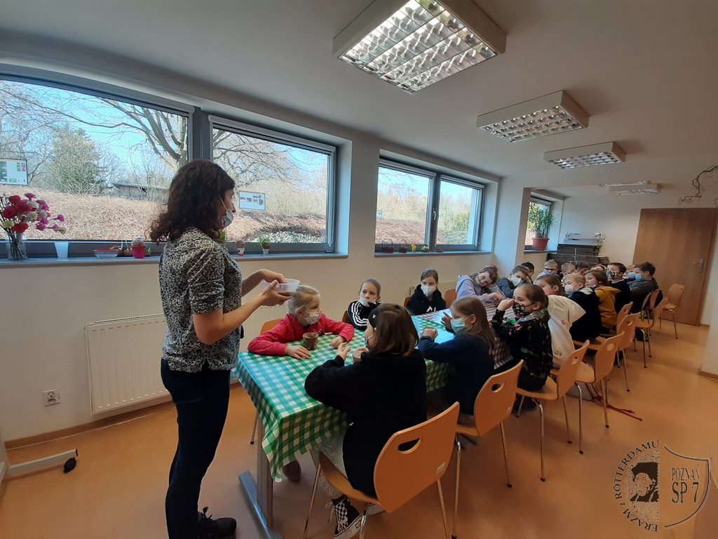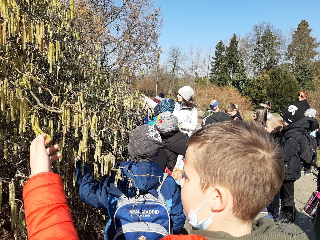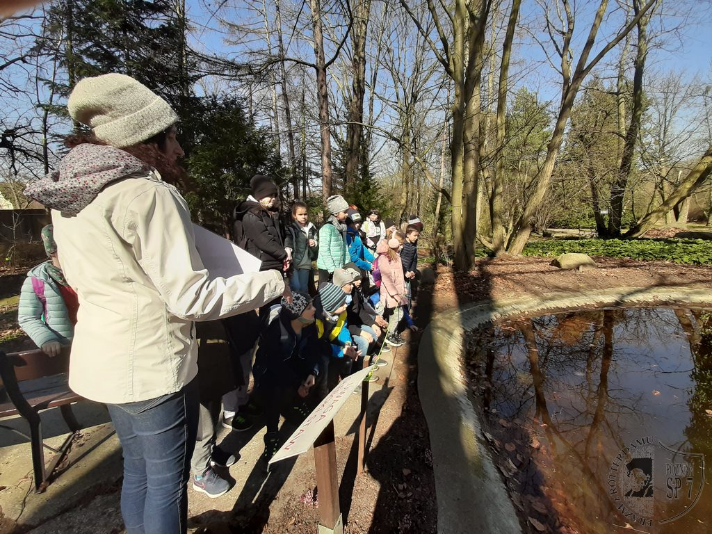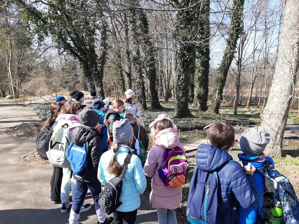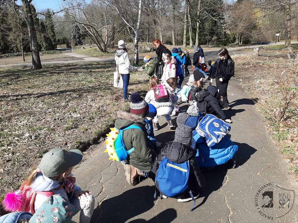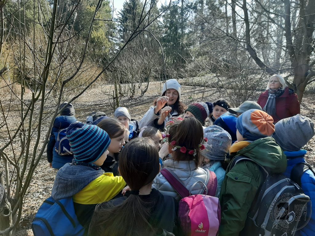 21 marca pojechaliśmy do Ogrodu Botanicznego, by sprawdzić, czy przyroda obudziła się już z zimowego snu. Udaliśmy się na poszukiwania kolorowych motyli, które wskazały nam pierwsze zwiastuny wiosny. Podziwialiśmy wiosenne kwiaty, między innymi przebiśniegi, krokusy, przylaszczki i pierwiosnki. Na trasie naszej wycieczki nie zabrakło też zwierząt. Obserwowaliśmy ptaki i motyle, staraliśmy się odnaleźć jeża oraz traszkę. Później wykonaliśmy wiosenne ludziki, które odpowiednio pielęgnowane już wkrótce zachwycą nas bujnymi zielonymi czuprynami.