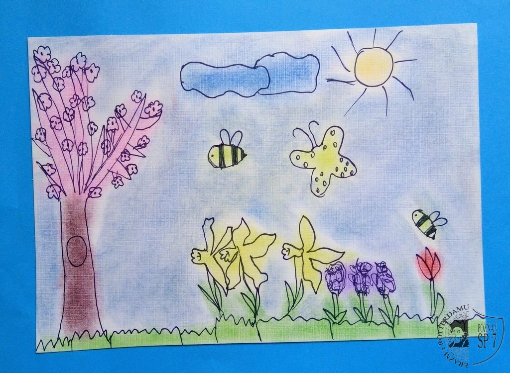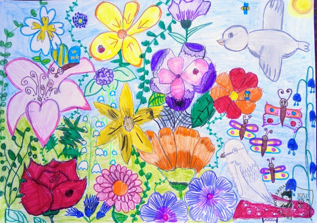 Młodzi artyści dzielnie podjęli się wykonania rysunku wiosennego ogrodu. Sam temat pozostawiał wielką furtkę do rozbudzenia wyobraźni i współpracy z fantazją. Prace były ciekawe, utrzymane w żywej kolorystyce, jak na tę porę roku przystało. Wszystkie emanowały ciepłem, radością, otwarciem na piękno przyrody i dotykały uśpionych zimą strun naszej wrażliwości.