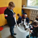 Pewnego wrześniowego dnia zamieniliśmy się w małych powstańców i wzięliśmy udział w grze zatytułowanej Droga powstańca. Musieliśmy przygotować opaski powstańcze i wybrać sobie pseudonimy. Później czekały na nas pierwsze rozkazy. Odczytywaliśmy wiadomości zapisane szyfrem GA DE RY PO LU KI, obliczaliśmy racje żywnościowe dla oddziałów powstańczych, pokonywaliśmy barykady. Śledziliśmy losy małego listonosza jednego z wielu Zawiszaków, którzy działali w Harcerskiej Poczcie Polowej. Słuchając opowieści o jego odwadze, każdy z nas złożył z papieru harcerską czapkę – rogatywkę. Następnie opatrywaliśmy rannych powstańców. Doskonale wywiązaliśmy się ze wszystkich zadań. Nauczyliśmy się śpiewać dwie pieśni powstańcze: Chłopaki z AK oraz Pałacyk Michla.