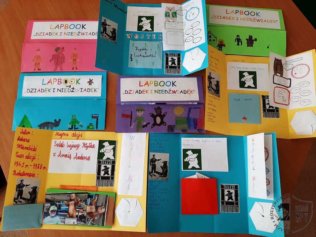 Bardzo zaciekawiła nas historia niedźwiadka Wojtka, który służył w Armii Andersa. Wykonaliśmy lapbooki poświęcone książce pana Łukasz Wierzbickiego pt. Dziadek i niedźwiadek.