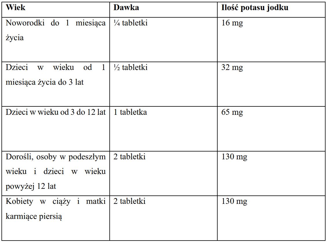 Dla sprawnego przebiegu dystrybucji aktywnego jodu zaleca się wyliczenie potrzebnej ilości zgodnie z poniższą tabelą (zgodnie z dyspozycją CZKMP).
