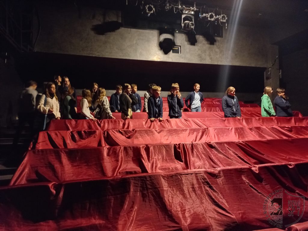 21 listopada uczniowie klasy 7c odbyli interesującą podróż po magicznym i pełnym tajemnic świecie skrytym za kulisami*, zwiedzili Teatr Nowy w Poznaniu. Podczas wycieczki młodzież mogła zobaczyć trzy sceny, tzw. Dużą Scenę, Scenę Nową i Scenę Trzecią oraz ich techniczne zaplecza. Poza tym uczniowie przechadzali się, na co dzień niedostępnymi dla widzów, korytarzami i obejrzeli garderobę oraz charakteryzatornię. Ponadto zapoznali się z pracą osób, które najczęściej nie są znane publiczności, po wizycie w teatrze młodzi Siódemkowicze z pewnością będą potrafili powiedzieć, czym zajmuje się inspicjent.