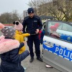 Cierpliwie odpowiadał na najbardziej zaskakujące pytania. Spełnił też największe marzenie Pierwszoklasistów, jakim było zwiedzanie radiowozu, podczas którego kilka razy włączyła się syrena. Przepraszamy