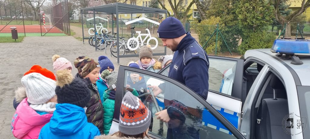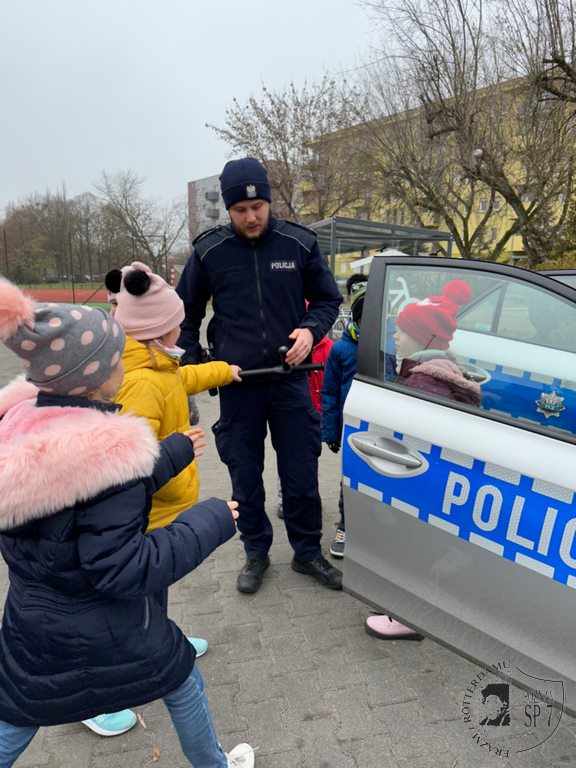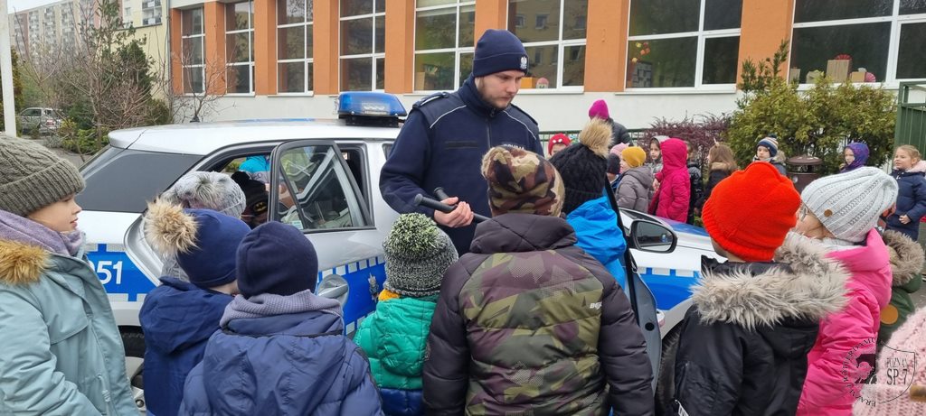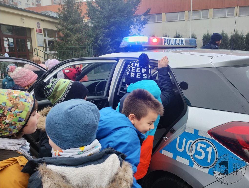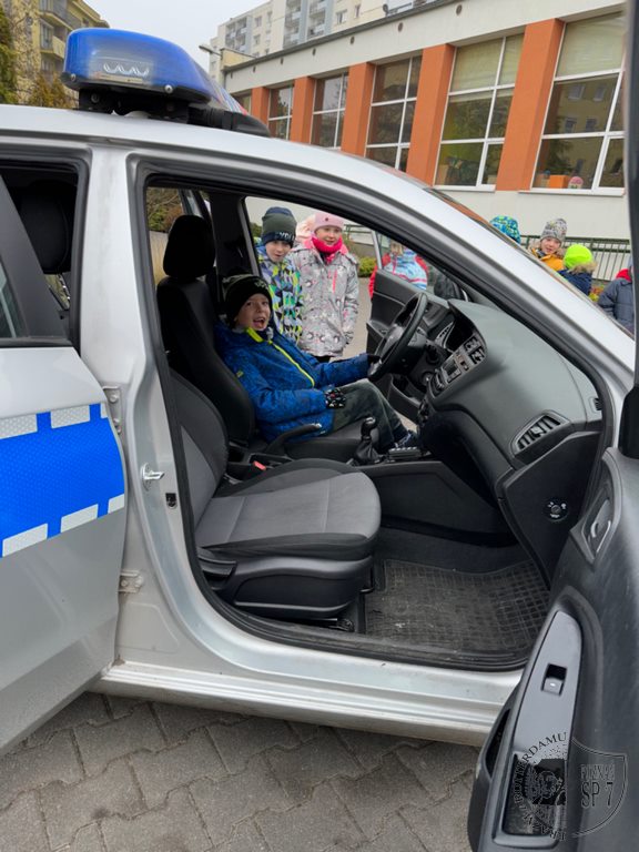 Cierpliwie odpowiadał na najbardziej zaskakujące pytania. Spełnił też największe marzenie Pierwszoklasistów, jakim było zwiedzanie radiowozu, podczas którego kilka razy włączyła się syrena. Przepraszamy
