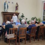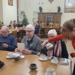 Zimowy czas. Coraz więcej nas. Mimo zimowej aury Seniorzy dotarli na spotkanie, a wraz z nimi nasza młodzież. Młodzi pięknie sprawdzają się w rozdawaniu prezentów, przy obsłudze stołów oraz częstując Seniorów serdeczną rozmową.