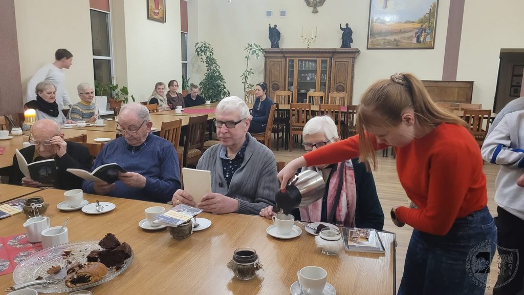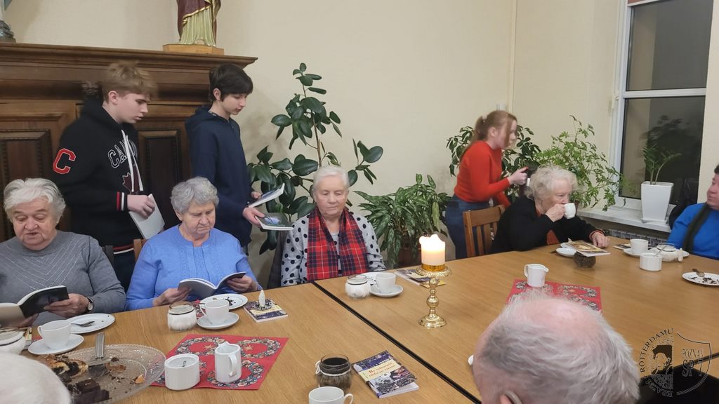 Zimowy czas. Coraz więcej nas. Mimo zimowej aury Seniorzy dotarli na spotkanie, a wraz z nimi nasza młodzież. Młodzi pięknie sprawdzają się w rozdawaniu prezentów, przy obsłudze stołów oraz częstując Seniorów serdeczną rozmową.
