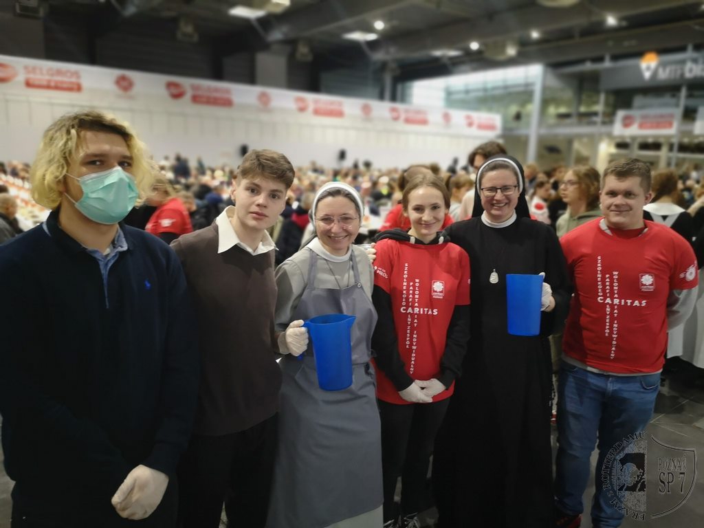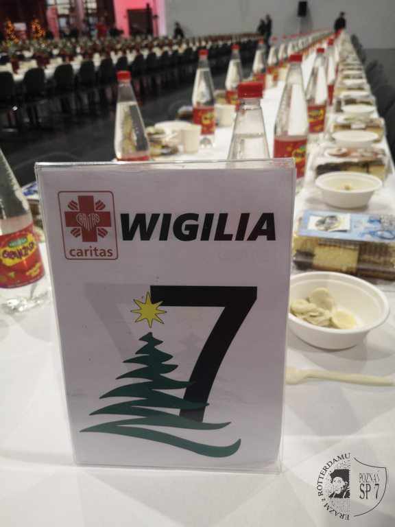 Kiedy choroba wykluczyła mnie z Wigilii dla bezdomnych, musiałam odmówić naszym drogim wolontariuszom z Siódemki, którzy tak licznie zgłosili się do obsługi stołu wigilijnego, aż musiałam utworzyć dla nich listę rezerwową. Pragnę ich jeszcze raz za to przeprosić, a są to uczniowie z klasy 8a, 8c, 8d (najliczniejsza grupa).