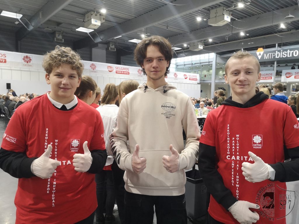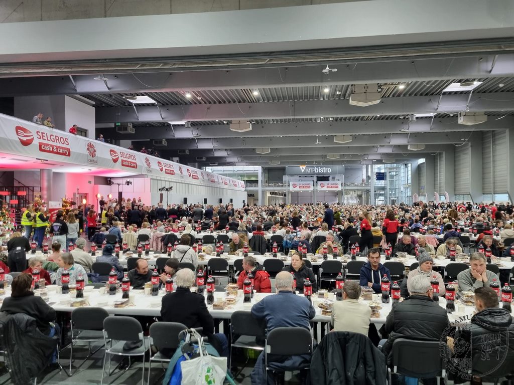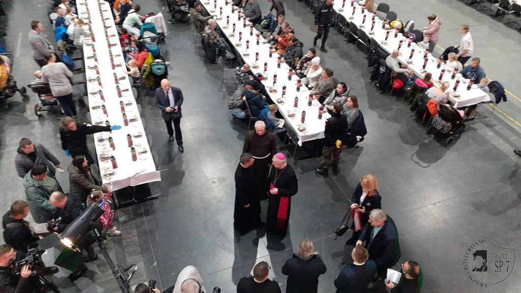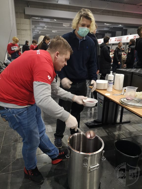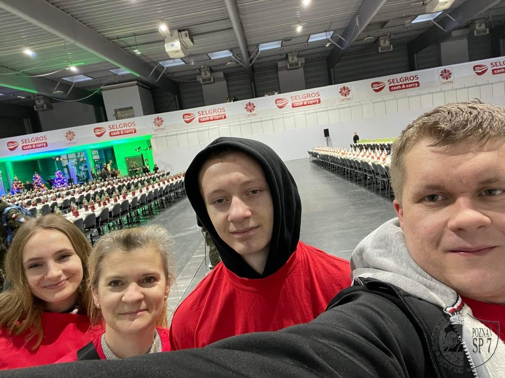 Stół nr 7 został utrzymany przez Siódemkę! Sprawnie obsłużono 60 Gości i wyposażono na drogę. Gorące raporty przyjmowałam dosłownie co kwadrans. Byłam i jestem wzruszona do teraz, postawą naszej młodzieży. Wzięliśmy po raz kolejny udział w największej Wigilii dla osób samotnych i bezdomnych na MTP, która w tym roku liczyła przeszło 1500 osób.