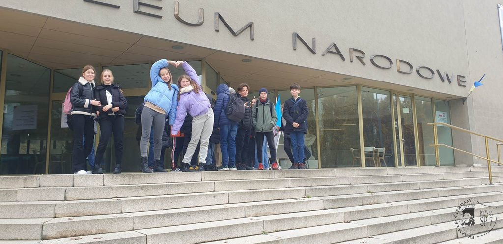 Uczniowie klasy 6a wybrali się na interesującą lekcję języka polskiego do Muzeum Narodowego. Najpierw wzięli udział w krótkim wykładzie dotyczącym opisu obrazu. Pani opowiedziała, jak dokonać analizy dzieła sztuki, na co należy zwrócić uwagę, podziwiając obraz. Wprowadziła uczniów w tajniki kolorystyki, światła, perspektywy oraz kompozycji.