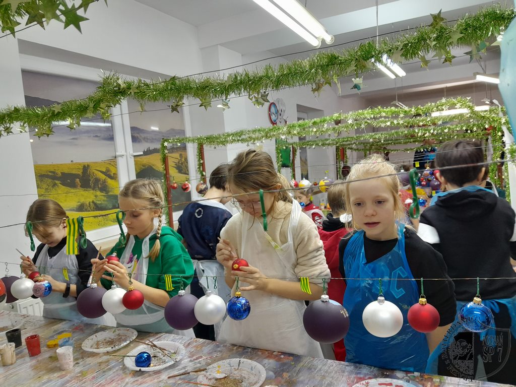 15 grudnia uczniowie klasy 1 b i 3 c pojechali na wycieczkę do gnieźnieńskiej wytwórni ozdób choinkowych Kadpol. Na miejscu przywitali nas pracownicy fabryki, którzy byli naszymi przewodnikami po tym wyjątkowym miejscu. Zwiedzanie rozpoczęliśmy od dmuchalni, gdzie mogliśmy zobaczyć, jak powstają szklane kule. Kolejnymi miejscami, które odwiedziliśmy były: srebrzalnia, lakiernia, miejsce, w którym bombki były zdobione oraz sklep. Po zwiedzaniu nadszedł czas na warsztaty. Każde dziecko miało okazję ozdobić według własnego pomysłu kilka bombek. Uczniowie uruchomili swoją wyobraźnię i wykorzystując pędzle, kolorowe farby, klej i brokat stworzyli oryginalne, jedyne w swoim rodzaju ozdoby.