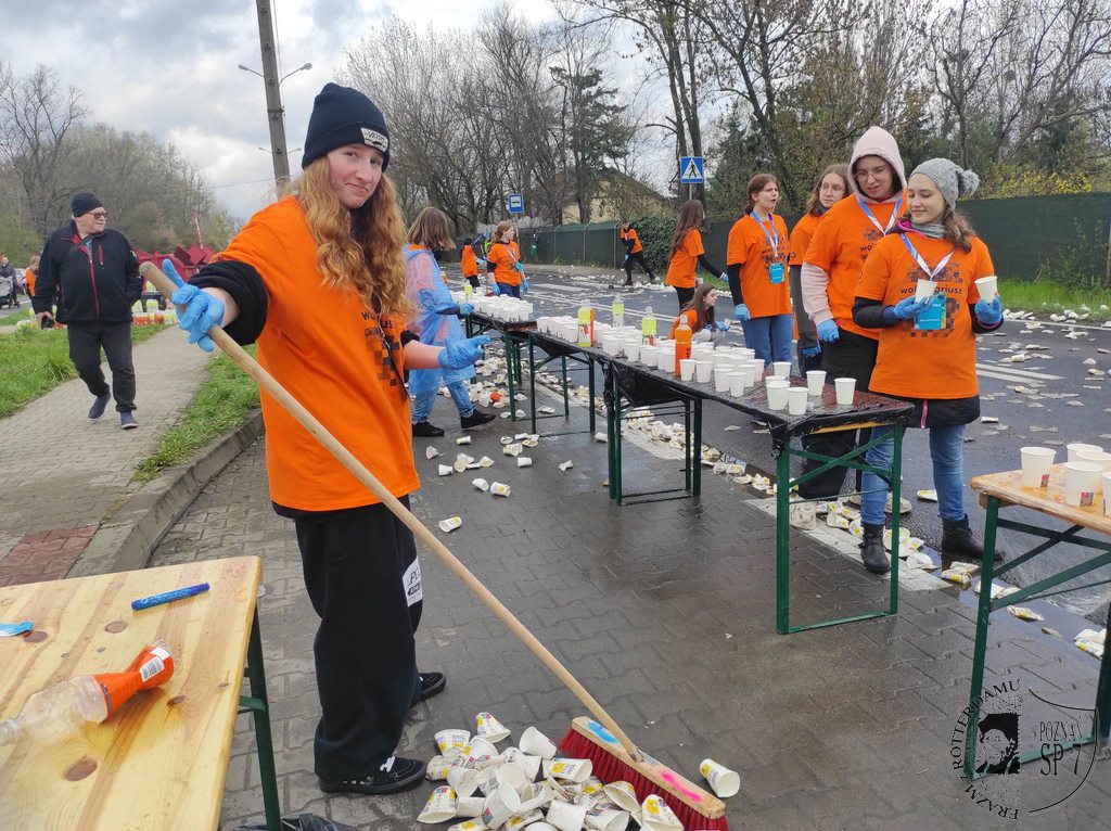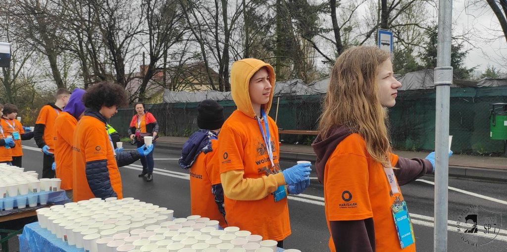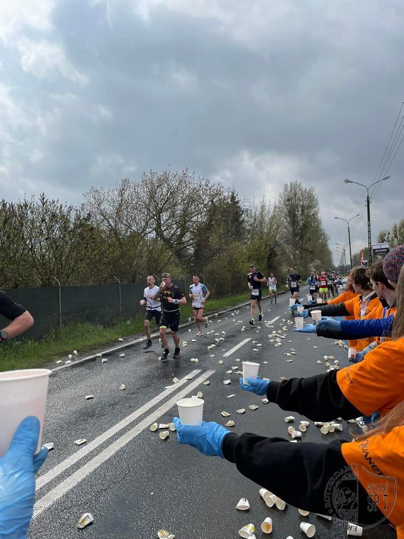 W niedzielę 16.04 odbył się XV Półmaraton Poznań, przy którego organizacji pomagało 35 uczniów z naszej szkoły. Wolontariusze wzięli udział w szkoleniu dzień wcześniej, aby następnego dnia udać się na wyznaczone dla nich miejsce pracy. Nasz punkt żywieniowy był trzecim punktem na trasie i znajdował się na 15-tym kilometrze. Rozdawaliśmy izotonik, wodę i czekoladę; kibicowaliśmy głośno uczestnikom biegu do samego końca.