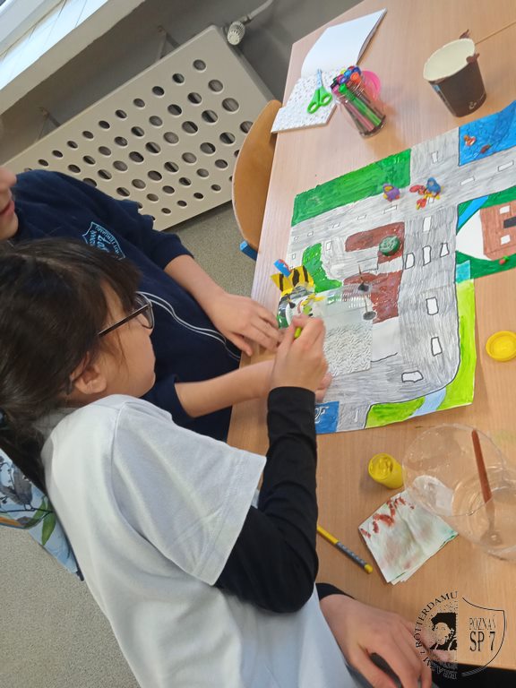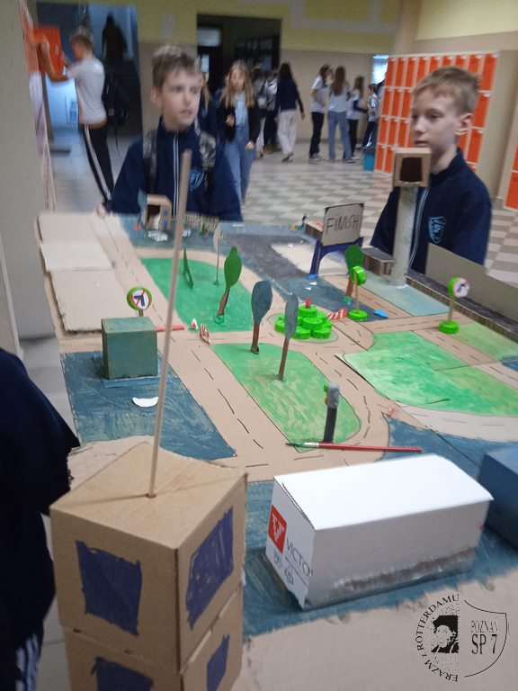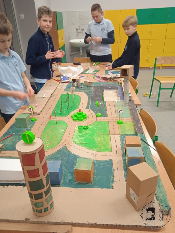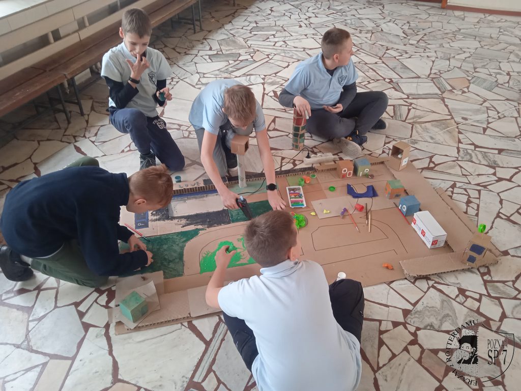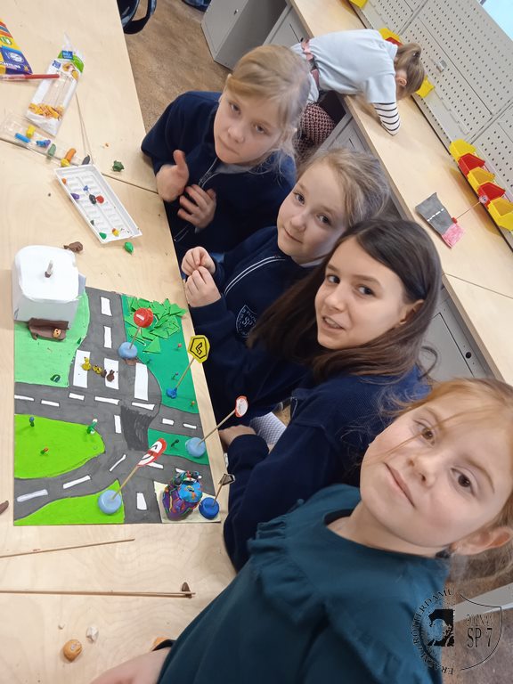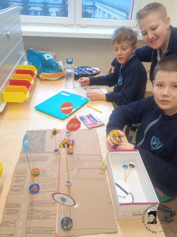 Idzie Wiosna. Tak przynajmniej twierdzą uczniowie klas 4, a oni wiedzą najlepiej. Już szykujemy się do zdobycia karty rowerowej, ale wcześniej przygotowanie teoretyczne. Tworzymy plansze drogi rowerowej oraz znaki drogowe i nie byłoby w tym nic nadzwyczajnego, gdyby nie męska ekipa, która zawsze tworzy w wielkim formacie. Zespół wykonał planszę, która nie mieściła się, ani w kategorii ocen, ani we framudze drzwi, a nawet w mojej wyobraźni.
