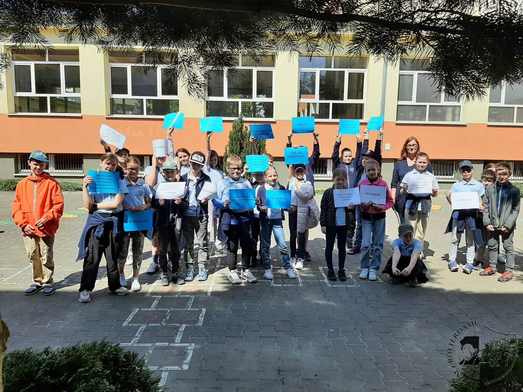 W dniach 8-12 maja uczniowie z klas I-III realizowali szkolny projekt Kosmos. Z tej okazji wzięli udział w szkoleniu dla Młodych Astronautów. Podczas zajęć w terenie dzieci zdobywały wiedzę na temat kosmosu. Poznały sylwetki słynnych astronomów i astronautów, między innymi patronów naszego osiedla (Galileusza, Izaaka Newtona, Mikołaja Kopernika czy Jana Keplera). Nauczyły się rozpoznawać różne gwiazdozbiory. Dowiedziały się, jak ułożone są planety w Układzie Słonecznym i ile czasu zajmuje obrót każdej z nich wokół własnej osi. Uczestnicy szkolenia musieli się również wykazać sprawnością fizyczną niezbędną podczas misji kosmicznych oraz znajomością różnych pojęć związanych z kosmosem. Poznali też elementy stroju astronauty. Wszyscy, którzy pomyślnie przeszli szkolenie, otrzymali Legitymacje Młodych Astronautów.