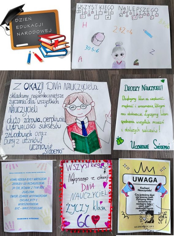 Musimy przyznać, że z wyzwaniem poradzili sobie wspaniale. Obok bardzo dobrego przygotowania merytorycznego zajęć, zapewnili nam mnóstwo dobrej zabawy, za co bardzo dziękujemy! Uczniowskie lekcje nie były jedyną niespodzianką dla nauczycieli w tym dniu. Każda klasa przygotowała piękny plakat z życzeniami dla wszystkich pracowników szkoły. Ozdobiły one drzwi wszystkich sal lekcyjnych. To był piękny i kolorowy dzień.