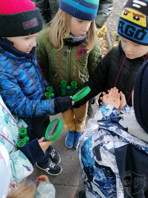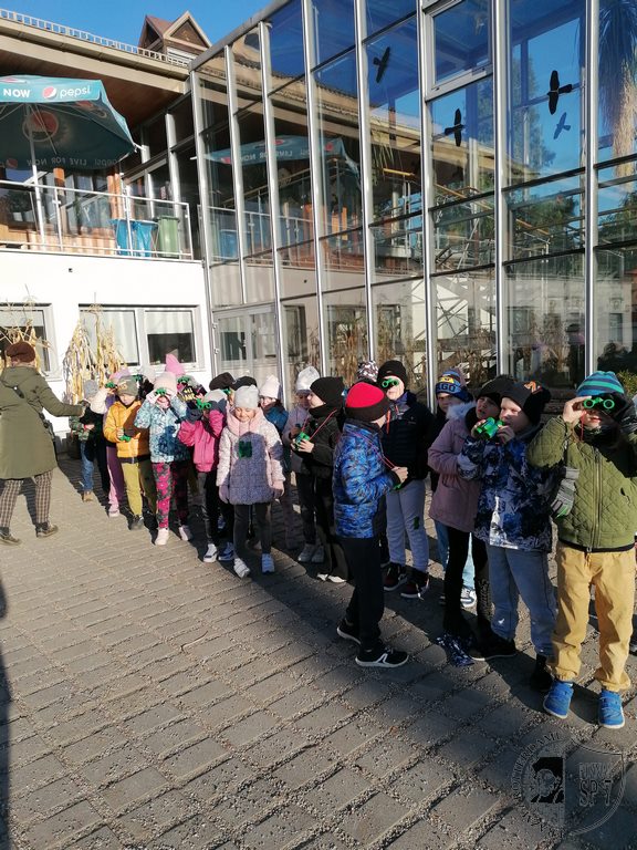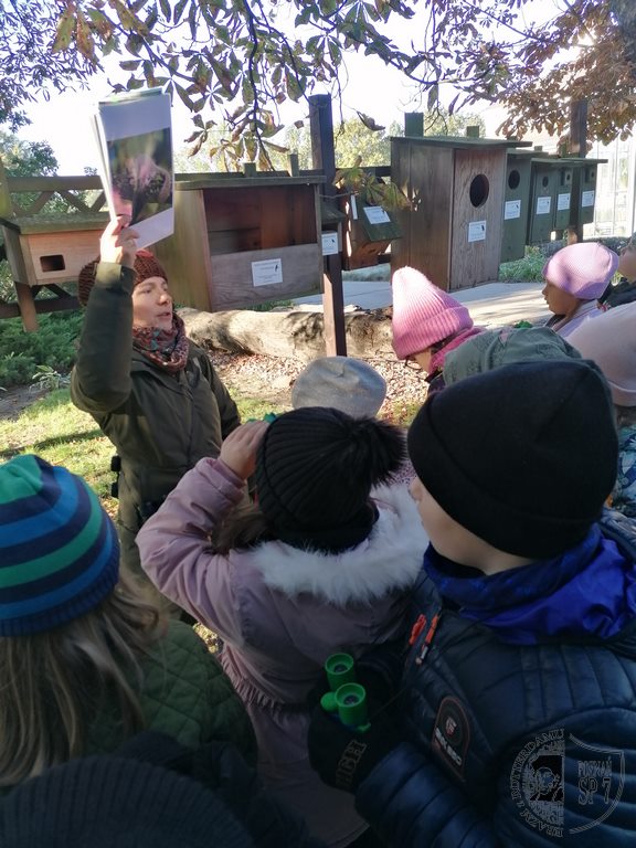 W październikowy poranek klasa 1a udała się do Ogrodu Botanicznego na warsztaty pt. Zwierzęta w ogrodzie, na ziemi i w wodzie. Choć było chłodno, humory nam dopisywały. Na początek otrzymaliśmy lornetki, aby mieć możliwość dokładnej obserwacji zwierząt, które żyją w ogrodzie. Przydały nam się one szczególnie do obserwacji ptaków żyjących w koronach drzew. Wypatrzyliśmy między innymi sójkę i kowalika. Dowiedzieliśmy się, że kowalik to taki ptak, który porusza się po konarach drzew głową w dół. Poruszając się alejkami ogrodu usłyszeliśmy odgłosy srok, których jest tam bardzo dużo. Zaciekawiły nas bardzo opowieści naszej pani przewodnik, która pokazywała nam budki lęgowe dla ptaków, budkę dla nietoperzy oraz budkę dla popielic. Szczególnie spodobała nam się budka, w której gniazdo założyły szerszenie. Materiał, z którego budują swoje gniazda te owady przypomina w dotyku papier. Mieliśmy też okazję poobserwować przez lupę, jak zachowują się i wyglądają w powiększeniu niektóre owady czy skorupiaki. Dowiedzieliśmy się, że żaby żyjące w ogrodowej sadzawce zagrzebały się w mule, aby w ten sposób przetrwać zbliżającą się zimę. Trochę nam przykro, gdyż nie udało nam się zobaczyć kicającej wiewiórki, ale za to wykonaliśmy ją z różnych materiałów przyrodniczych. Będzie ona dla nas pamiątką z wycieczki do ogrodu i ilekroć na nią spojrzymy, przypomnimy sobie tę ciekawą wycieczkę.