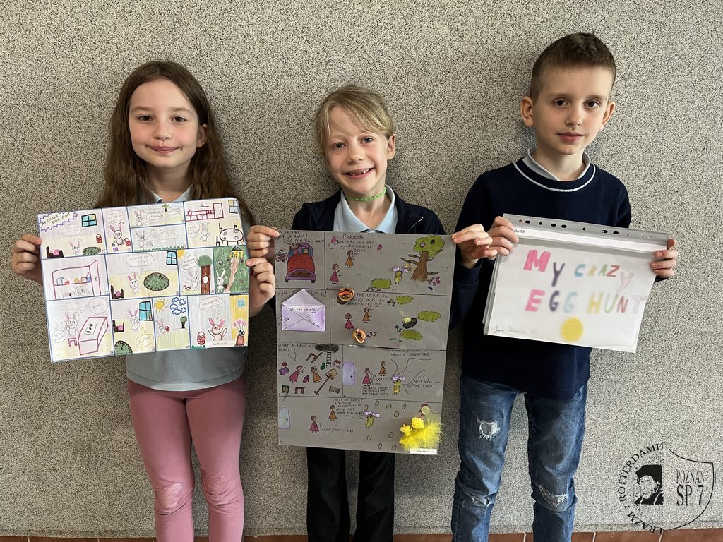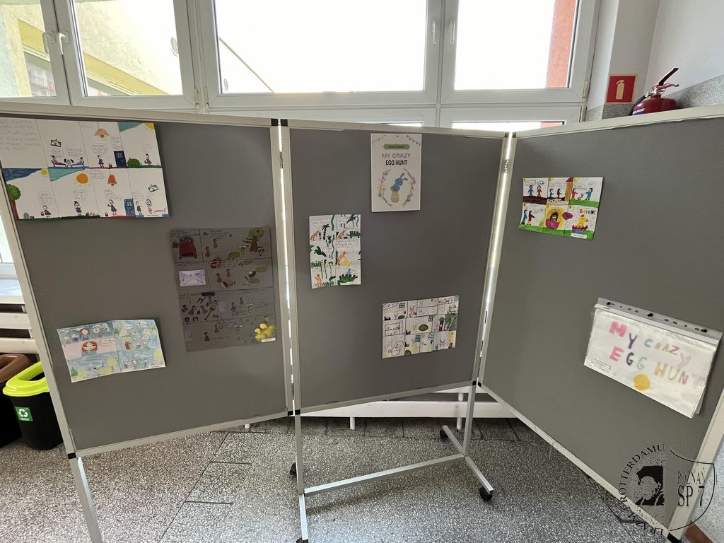 W związku z tą tradycją w naszej szkole odbył się konkurs języka angielskiego My Crazy Egg Hunt. Uczestnicy w ramach konkursu musieli przygotować komiks, którego tematem było poszukiwanie jajek oraz przygoda z tym związana.