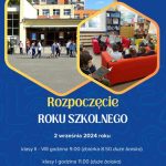 Serdecznie zapraszamy na uroczyste rozpoczęcie roku szkolnego 2024/2025, które odbędzie się 2 września na boisku przed głównym wejściem do szkoły.