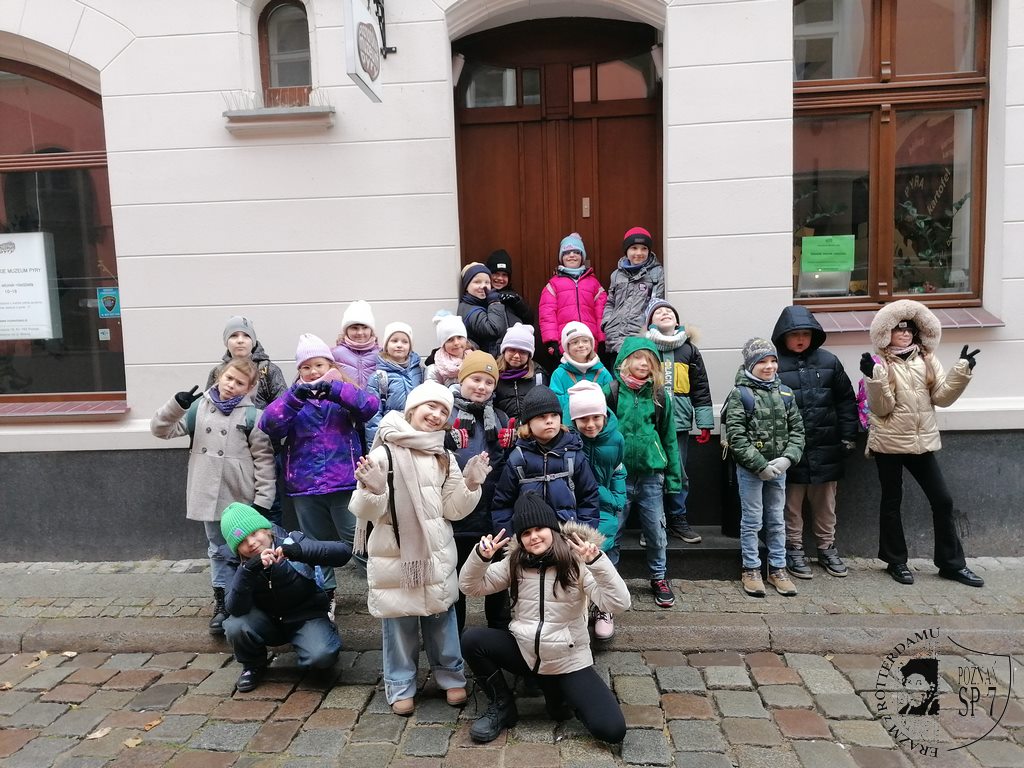 14 listopada uczniowie klasy 2a wybrali się na wycieczkę do Poznańskiego Muzeum Pyry, które mieści się przy ulicy Wronieckiej. Po drodze przemaszerowaliśmy po płycie Starego Rynku, podziwiając piękno kamieniczek i poznańskiego Ratusza. Po wejściu do muzeum poczuliśmy wspaniały zapach pieczonych ziemniaków, a po chwili wszyscy wzięliśmy udział w kulinarnych zajęciach, podczas których każdy z nas przyprawił solą, papryką i tymiankiem własnego ziemniaka.