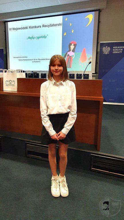 Z wielką dumą informujemy, iż uczennica naszej Szkoły, Jagna Kuczer z klasy 6d, zajęła I miejsce w VI Wojewódzkim Konkursie Recytatorskim „Bajka cygańska” w kategorii uczniów polskojęzycznych z klas VI-VIII.