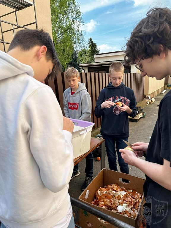 W minioną sobotę 13 kwietnia stawiliśmy się gotowi do pracy, ale nie sami, towarzyszyło nam troje rodziców, było to, o tyle bezcenne, że doszły dodatkowe zadania: wydawanie posiłków dla potrzebujących i obsługa przy stołach. Młodzież miała dodatkowe zadanie: obieranie dwóch worków cebuli, na ochotnika zgłosili się nasi młodzi mężczyźni, co czyni ich niemal bohaterami.