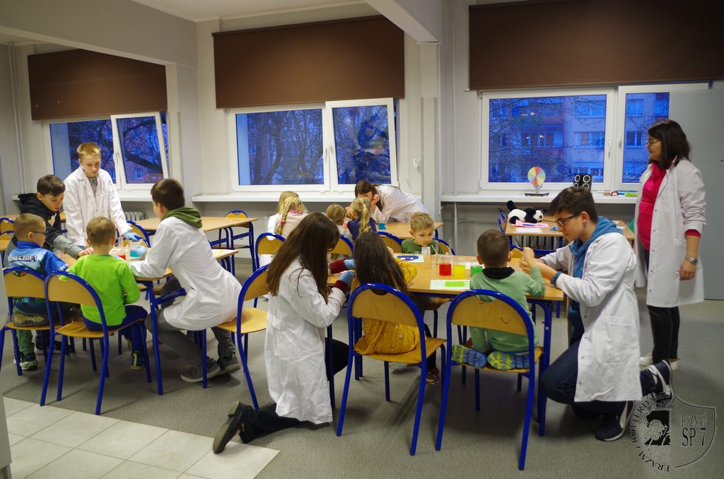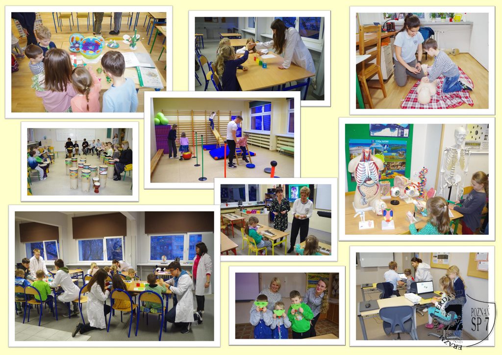Po wykonaniu zadania mali goście udali się na różnorodne zajęcia warsztatowe, takie jak: programowanie z użyciem klocków Lego, granie na bębnach, śpiewanie piosenek, poznawanie ciekawostek przyrodniczych, poznanie tajników teatrzyku Kamishibai, doświadczenia chemiczne, zajęcia plastyczne oraz sprawnościowe – pokonywanie przeszkód.