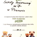 Mimo upływu 122 lat, pluszowe misie wciąż wywołują szczery uśmiech na twarzach zarówno dzieci, jak i dorosłych. Dlatego właśnie tego dnia wolontariusze Fundacji Mam Marzenie odwiedzają dzieci przebywające w szpitalach, rozdając im maskotki. Nasza Szkoła kolejny raz dołączyła do akcji. Samorząd Uczniowski ogłosił zbiórkę, której efekty przeszły nasze najśmielsze oczekiwania! 21 listopada kosz pełen pluszaków i innych zabawek został dostarczony do siedziby Fundacji, by w Dniu Pluszowego Misia każde dziecko z poznańskiego szpitala mogło przytulić swojego nowego przyjaciela i choć na chwilę zapomnieć o trudach walki z chorobą, z dala od domu i bliskich.