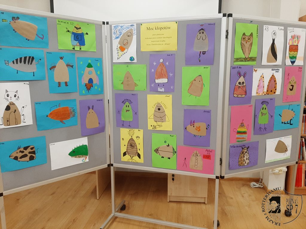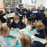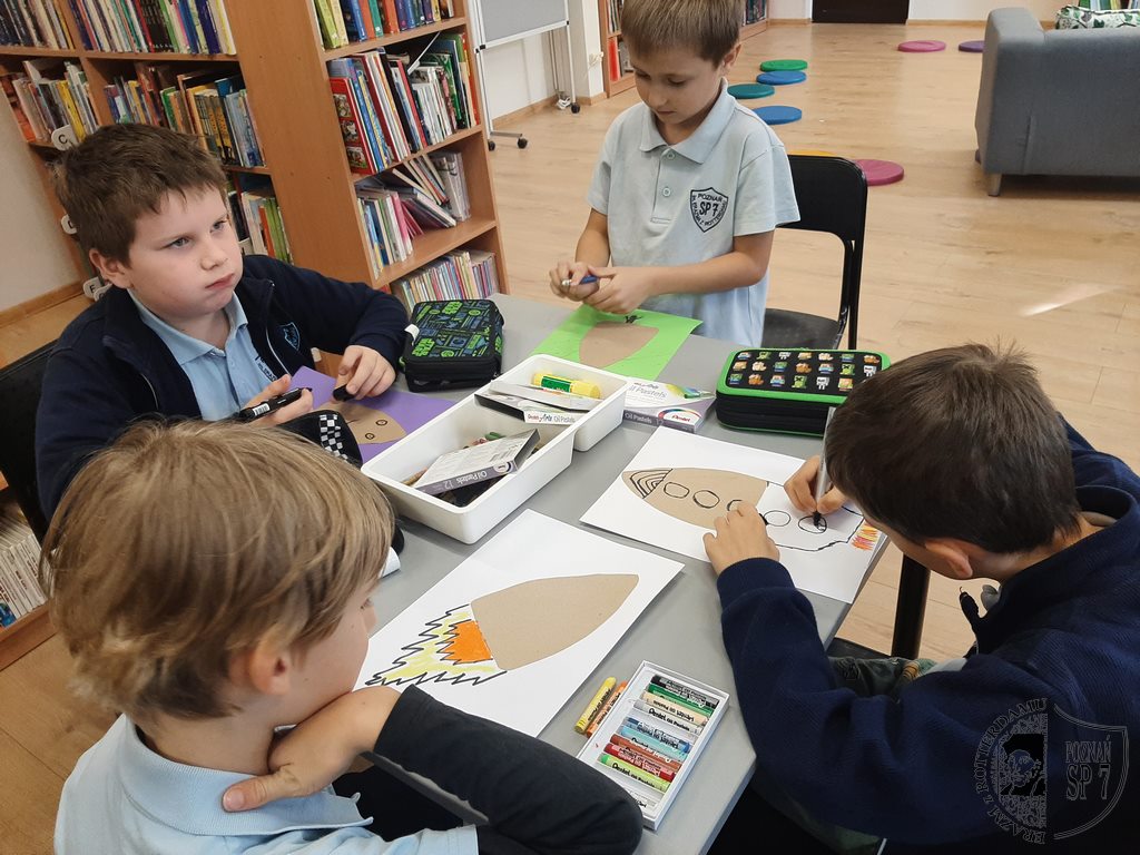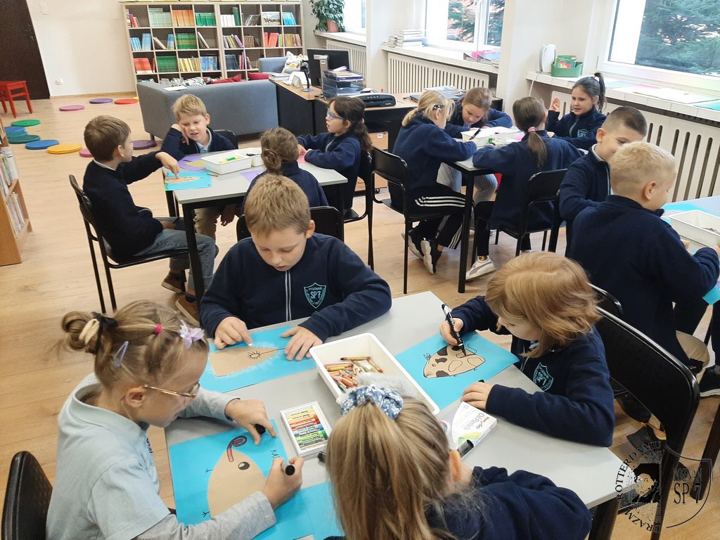 Z okazji Ogólnopolskiego Dnia Głośnego Czytania 30 września bibliotekę odwiedziły klasy drugie. Uczniowie wzięli udział w warsztatach czytelniczo-plastycznych inspirowanych picture bookiem autorstwa pani Iwony Chmielewskiej pt. „Kłopot”. Bohaterka książki prasowała haftowany obrus, cenną pamiątkę po babci. Zamyśliła się i na białym płótnie powstał ślad spalonego żelazka. Był to dla niej prawdziwy kłopot i nie wiedziała, jak mu zaradzić.