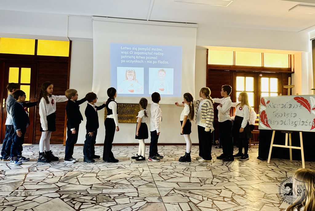 W czwartek, 7 listopada, uczniowie klas I–III naszej szkoły wzięli udział w uroczystych obchodach Narodowego Święta Niepodległości. Była to wyjątkowa okazja, by w radosny i pełen refleksji sposób uczcić 107. rocznicę odzyskania przez Polskę niepodległości.