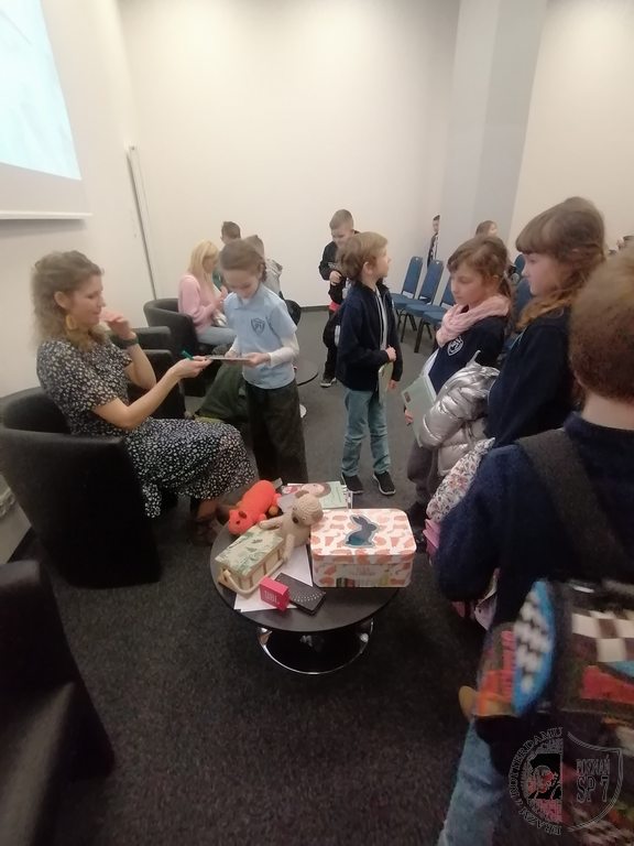 Na koniec spotkania pani Aleksandra wpisywała dedykacje do zakupionych przez nas książek. Było to bardzo ciekawe spotkanie, które pobudziło naszą wyobraźnię i jeszcze bardziej wprowadziło nas w świat książek.