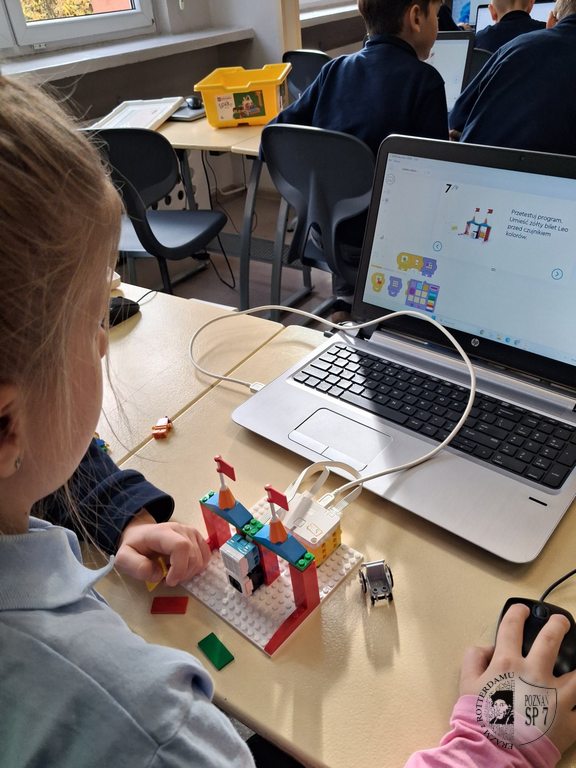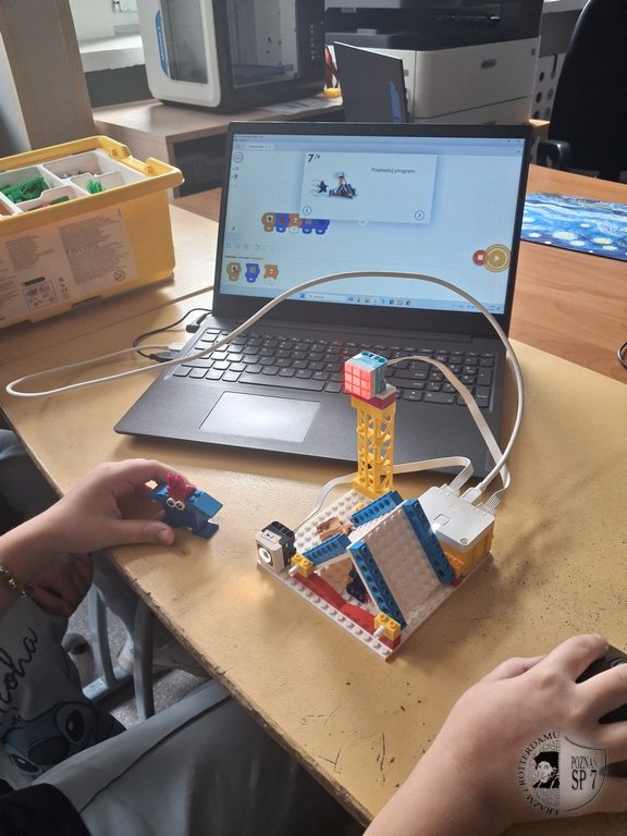 Zajęcia komputerowe zostały wzbogacone o elementy robotyki dzięki zestawom LEGO SPIKE Prime, z których uczniowie korzystają kilka razy w miesiącu, pracując w parach - Nowoczesne technologie – Druk 3D