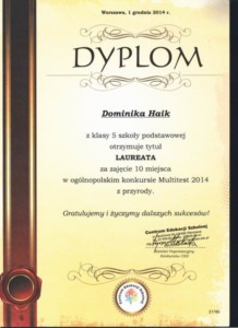 Dnia 11 czerwca 2015 roku, reprezentacja naszej szkoły w składzie Karolina Taborska klasa 6d, Marta Hała klasa 5d uczestniczyła w konkursie „ABC – nie zawsze chodzi o alfabet”, obejmującym zagadnienia z zakresu przedmiotu przyrody oraz udzielania pierwszej pomocy. Zwycięzcy zostali wyłonieni po pięciu konkurencjach praktyczno- teoretycznych. Konkurs odbył się w Gimnazjum nr 6 w Poznaniu, natomiast rozdanie nagród miało miejsce 18 czerwca 2015 roku w Zespole Szkół Handlowych na ul. Śniadeckich 54/58 w Poznaniu. Serdeczne podziękowania dla Pani Alicji Dubel za przygotowanie, motywację i dobro słowo, Pani pielęgniarce za pomoc w nauce i zajęcia praktyczne.