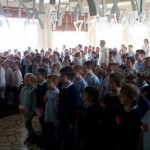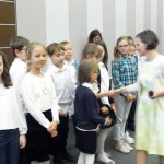 Po powitaniu przez panią Dyrektor pierwszoklasiści wysłuchali zaśpiewanej przez zespół Siódemeczki piosenki o tym samym tytule. Następnie uczniowie klasy 3c przywitali swoich młodszych kolegów wierszem, zapewniając, iż w razie potrzeby zawsze mogą liczyć na pomoc starszych kolegów. Kolejne wyzwanie polegało na ruchowej interpretacji wiersza Pierwszaczek. Wtedy w sukurs pierwszakom przyszły panie wychowawczynie, które zamieniły się w żywe lustra. Oczywiście i to zadanie zostało zaliczone.