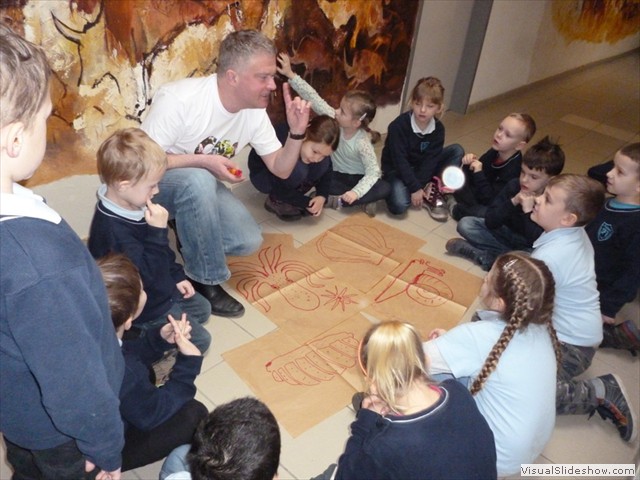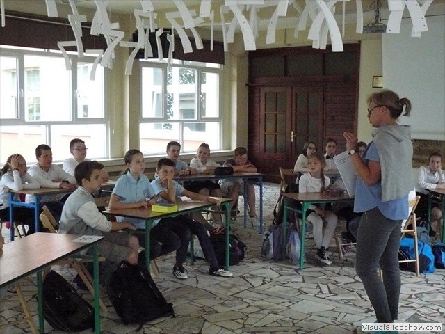 Uczniowie mogli obejrzeć prezentację w holu szkoły, a ci najmłodsi z radości pomachać papieskimi chorągiewkami.