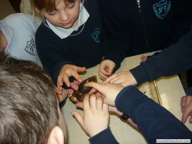 Wzięliśmy udział w lekcji pt. W świecie gadów. Dowiedzieliśmy się, że gady to kręgowce. Są to zwierzęta jajorodne, zmiennocieplne. Ich skóra pokryta jest łuskami lub tarczkami. Poznaliśmy przedstawicieli gadów: żółwia, węża i jaszczurkę. Pani pokazała nam, jak wygląda skorupa żółwia i wylinka węża. Później zwiedzaliśmy Zoo. Widzieliśmy wiele niezwykłych zwierząt, między innymi: małpy, alpaki, surykatki, lemury, żółwie i różne ptaki. To była niezwykła lekcja przyrody.