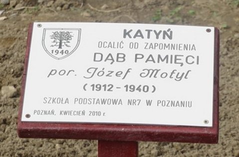W ramach ogólnopolskiego projektu Katyń- ocalić od zapomnienia w kwietniu 2010 roku odbyła się w naszej Szkole po raz pierwszy uroczystość posadzenia Dębu pamięci dla uhonorowania porucznika Józefa Motyla, zamordowanego w Katyniu w 1940 roku. 7 kwietnia tego roku, podczas uroczystego apelu, ponownie przypomnieliśmy jego sylwetkę i uczciliśmy pamięć ofiar terroru stalinowskiego.