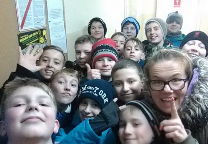 W turnieju było też zadanie dla wychowawców. Musieli oni na czworakach dmuchając w piłeczkę pingpongową dotrzeć do mety, a kiedy już tam się znaleźli wypić pół kubka soku z cytryny. Uśmiechu, dobrego humoru, ale i entuzjazmu naszej pani nie brakowało. Nie mogła zawieźć swoich uczniów, którzy podczas turnieju dali z siebie wszystko.