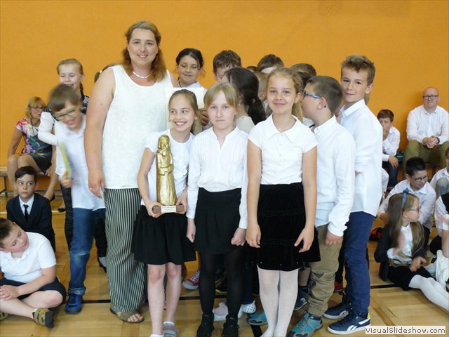 Jak co roku obchodziliśmy Święto Szkoły. Na uroczystym apelu szczególnie wyróżnieni, wpisem do Księgi Patrona, zostali najlepsi uczniowie klas VI . No i nareszcie ogłoszono wyniki szkolnego projektu Zdobywamy Statuetkę Złotego Erazma. Laureatami tegorocznej edycji pod hasłem 1050 rocznica Chrztu Polski zostali uczniowie i wychowawcy klas: 1a; 2e; 3c; 4c; 5b i 6e. Złotego Erazma w kategorii Przyjaciele Siódemki otrzymała pani Elżbieta Krygowska-Butlewska – znana ilustratorka książek dla dzieci, od lat zaprzyjaźniona z naszą szkołą. Wszystkim dzieciakom dziękujemy za wysiłek i zaangażowanie w rozwiązywaniu tegorocznych zadań, a zwycięzcom raz jeszcze serdecznie gratulujemy.