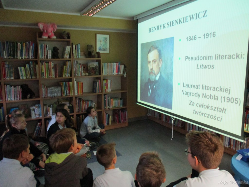 Chcąc przedstawić uczniom tego pisarza i jego twórczość, 29 września 2016 roku w Dniu Głośnego Czytania, rozpoczęliśmy cykl zajęć w klasach VI poświęconych wspólnemu czytaniu utworów Henryka Sienkiewicza. Klasa VIb czytała nowelę Latarnik, pozostałe klasy wybrały fragmenty powieści Krzyżacy.