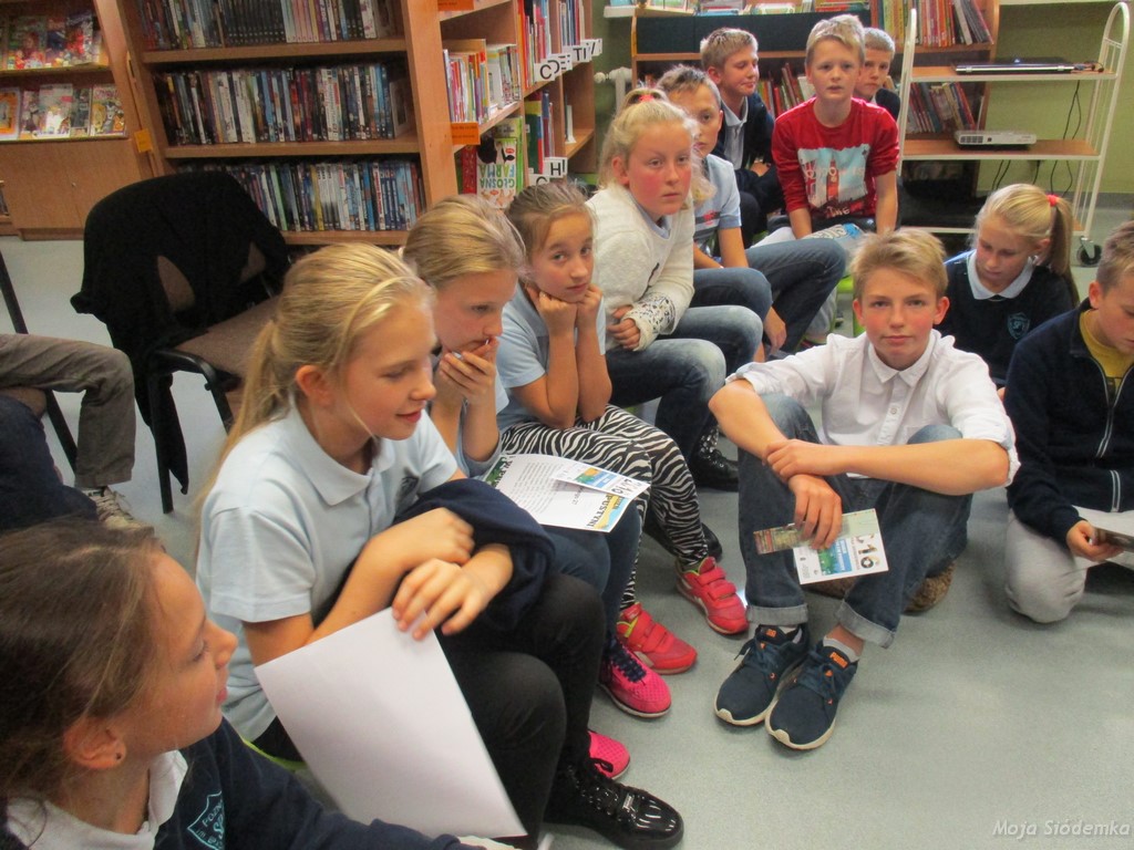 Na przełomie września i października klasy V uczestniczyły w cyklu spotkań zatytułowanych Jesień w pustyni i w puszczy zorganizowanych przez filię 46 Biblioteki Raczyńskich w ramach obchodów Roku Sienkiewicza.