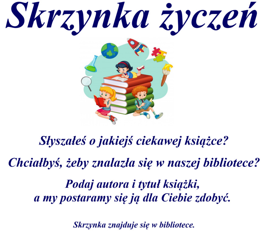 Książki można zacząć czytać już od jutra, natomiast zgody i testy dostępne będą w bibliotece szkolnej od poniedziałku – 3.12.2019 r.