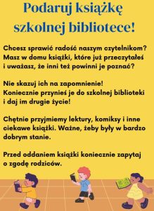 Nie skazuj ich na zapomnienie i zarastanie kurzem na półce Twojej domowej biblioteczki. Koniecznie przynieś je do biblioteki szkolnej i daj im drugie życie!